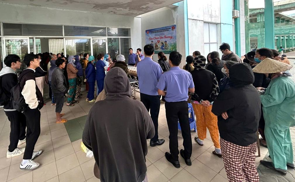 Chi đoàn VKSND khu vực 5 tổ chức phát cháo thiện nguyện tại Khoa Ung bướu - Bệnh viện Đa khoa Quảng Nam
