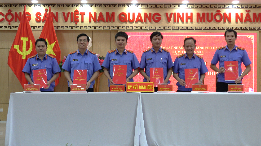 Các đại biểu đã tập trung thảo luận, đóng góp nhiều ý kiến thiết thực xoay quanh nội dung dự thảo giao ước thi đua, Quy chế hoạt động của Cụm năm 2026. Các ý kiến phát biểu thể hiện tinh thần trách nhiệm cao, dân chủ, thẳng thắn và mang tính xây dựng, góp phần hoàn thiện nội dung giao ước phù hợp với yêu cầu nhiệm vụ chính trị và thực tiễn công tác của từng đơn vị. Trên cơ sở đó tiếp tục xây dựng mối quan hệ đoàn kết, gắn bó và phối hợp chặt chẽ giữa các đơn vị, phấn đầu hoàn thành tốt nhiệm vụ được giao, góp phần tích cực vào phòng trào thi đua chung của ngành Kiểm sát Đà Nẵng. Sau khi thống nhất các nội dung, đại diện lãnh đạo các đơn vị của Cụm thi đua số 1 đã tiến hành ký kết giao ước thi đua.