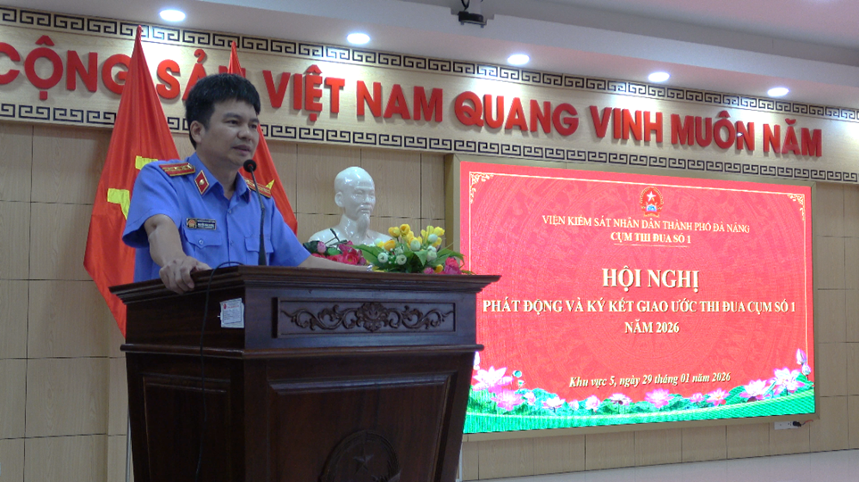 Tham dự hội nghị có các đồng chí đại diện lãnh đạo và công chức làm công tác thi đua, khen thưởng các đơn vị VKSND khu vực 1, 2, 3, 4, 10; cùng tập thể lãnh đạo và công chức VKSND Khu vực 5 - Đà Nẵng. Sau khi nghe đồng chí Huỳnh Chí Cường, Phó Viện trưởng VKSND Khu vực 5 đã trình bày dự thảo giao ước thi đua cùng quy chế tổ chức và hoạt động của Cụm thi đua số 1 năm 2026. Thay mặt Cụm, đồng chí Nguyễn Ánh Dương - Viện trưởng VKSND khu vực 5 chủ trì phần thảo luận.