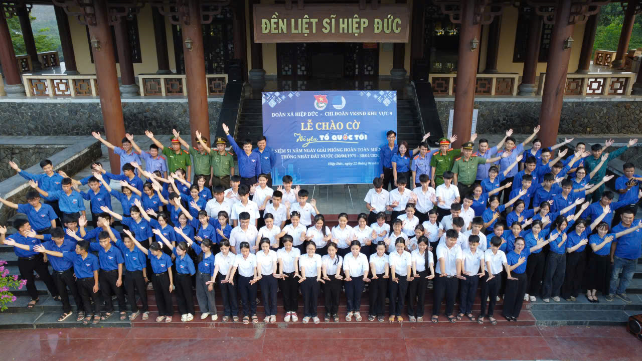 Chiều ngày 22/4/2026 Đoàn thanh niên VKSND Khu vực 9 phối hợp với Đoàn xã Hiệp Đức tổ chức lễ chào cờ, thắp nến tri ân các anh hùng liệt sĩ tại đền liệt sĩ UBND xã Hiệp Đức nhân kỷ niệm 51 năm ngày giải phóng hoàn toàn miền nam thống nhất đất nước (30/4/1975 – 30/4/2026).