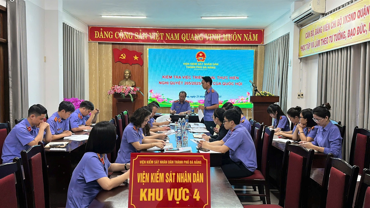 Thực hiện chương trình công tác năm và nhằm đánh giá tình hình triển khai thực hiện Nghị quyết số 205/2025/QH15 của Quốc hội, ngày 23/12/2025, Đoàn công tác của Viện kiểm sát nhân dân thành phố Đà Nẵng do đồng chí Nguyễn Văn Chiến Phó Viện trưởng Viện kiểm sát nhân dân thành phố Đà Nẵng làm Trưởng đoàn đã tiến hành kiểm tra tại Viện kiểm sát nhân dân Khu vực 4.