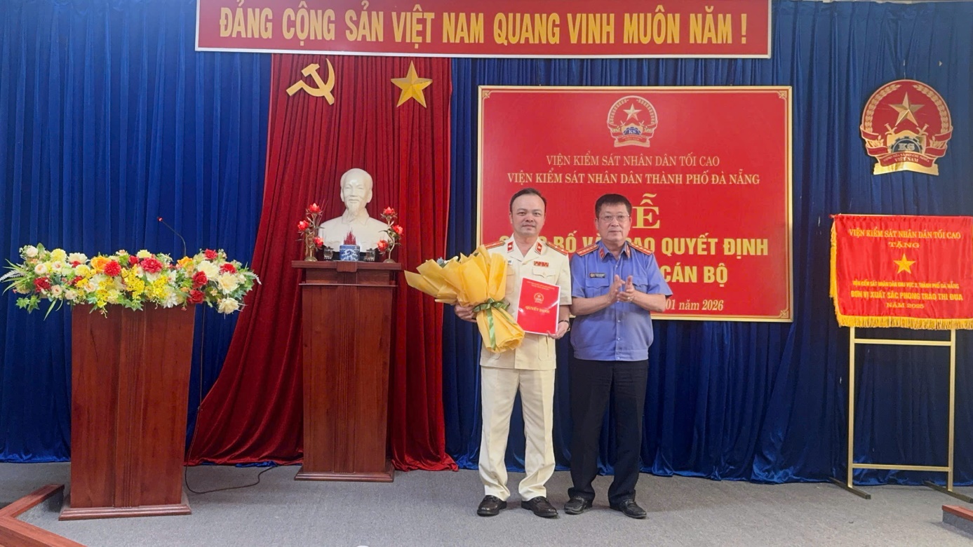 Tại buổi lễ, đồng chí Nguyễn Quang Minh – Trưởng phòng Tổ chức cán bộ VKSND thành phố Đà Nẵng công bố Quyết định của Viện trưởng VKSND thành phố Đà Nẵng về việc điều động đồng chí Nguyễn Văn Khánh, Kiểm sát viên sơ cấp, Phó Viện trưởng VKSND khu vực 4 – Đà Nẵng giữ chức vụ Phó Viện trưởng VKSND khu vực 3 – Đà Nẵng kể từ ngày 16/01/2026.