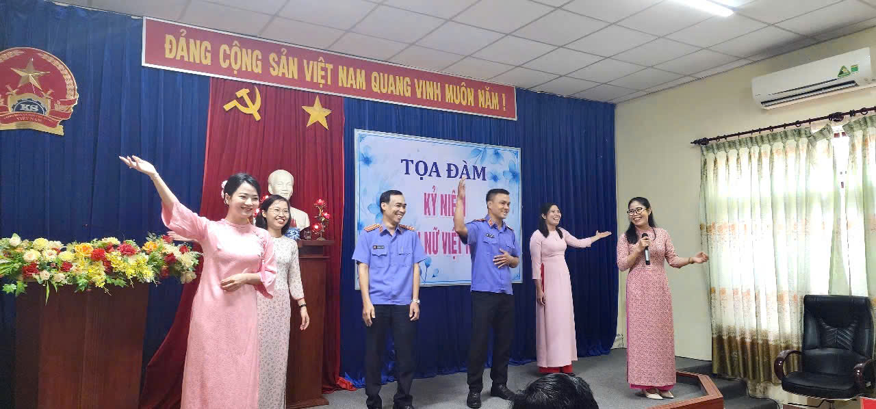 Phát biểu tại tọa đàm, đồng chí Võ Thị Trúc Lâm - Phó Bí thư Chi bộ, Phó Viện trưởng đại diện nữ công chức trong đơn vị bày tỏ lòng biết ơn sâu sắc trước sự quan tâm, động viên của lãnh đạo đơn vị; đồng thời cam kết sẽ tiếp tục nỗ lực học tập, rèn luyện, phát huy phẩm chất người phụ nữ ngành Kiểm sát – bản lĩnh, nhân văn, kỷ cương và sáng tạo.