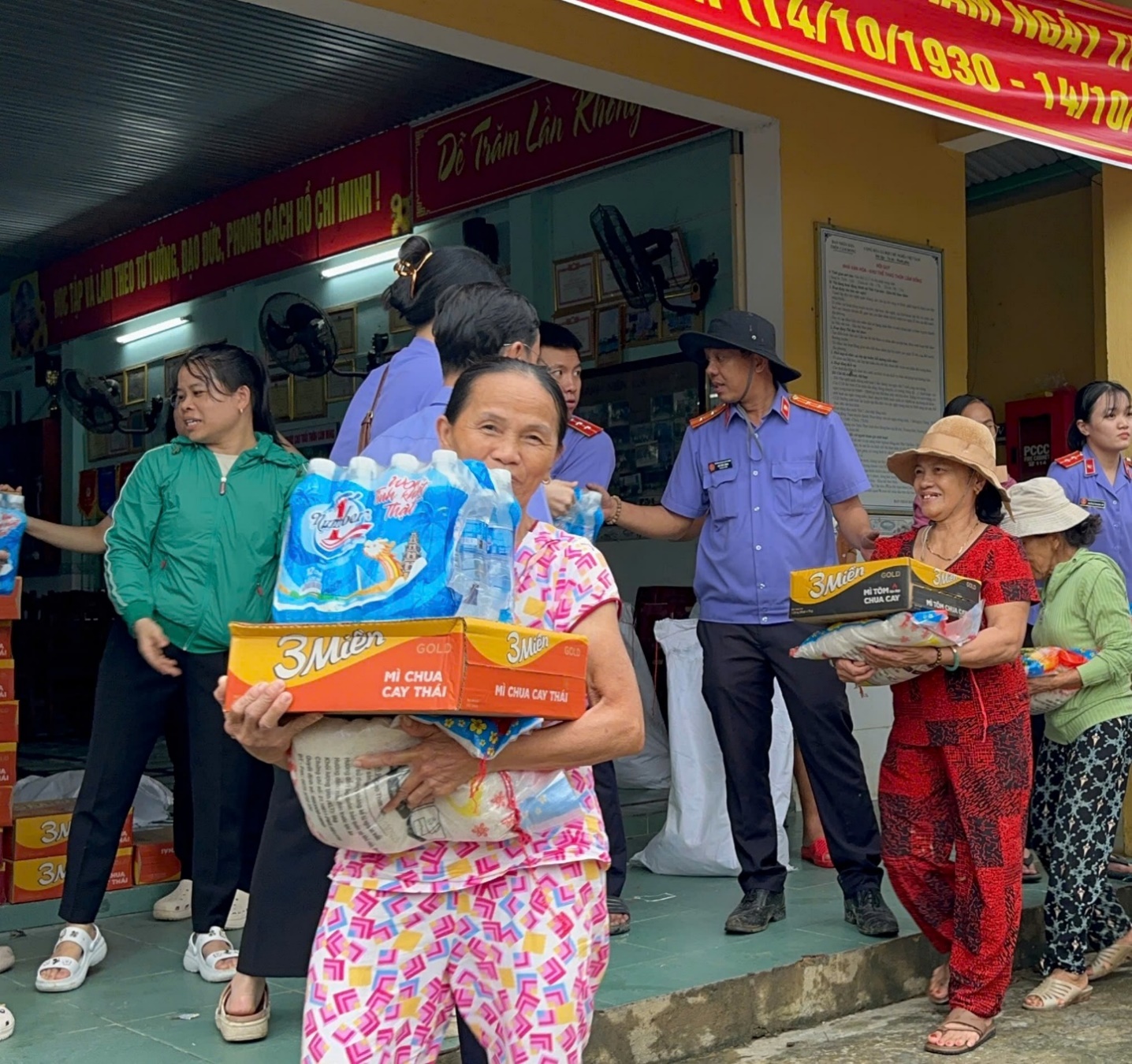 Dù đơn vị cũng nằm trong vùng rốn lũ, nhiều đồng chí phải tạm thời di chuyển người thân, tài sản đến nơi an toàn, nhưng ngay khi điều kiện cho phép, tập thể công chức Viện kiểm sát nhân dân khu vực 10 – Đà Nẵng đã nhanh chóng ổn định tình hình, huy động lực lượng và chuẩn bị 500 suất quà gồm các nhu yếu phẩm thiết yếu như gạo, mì tôm, nước uống... với tổng trị giá 120 triệu đồng để kịp thời hỗ trợ bà con bị ảnh hưởng bởi mưa lũ. Chỉ ít giờ sau khi nước rút, những chuyến xe mang sắc áo Kiểm sát lại lăn bánh trên những tuyến đường còn ngập sâu, chở theo tấm lòng sẻ chia và tinh thần “Vì Nhân dân phục vụ”, mang những phần quà nghĩa tình đến với bà con tại các xã, phường Thu Bồn, Gò Nổi, Điện Bàn và một số khu dân cư thấp trũng khác.