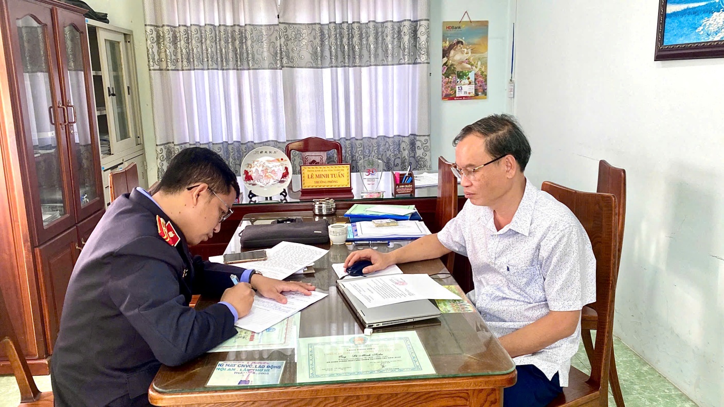 Kiểm sát viên làm việc với Lãnh đạo Phòng Kinh tế, hạ tầng đô thị phường Hội An Tây