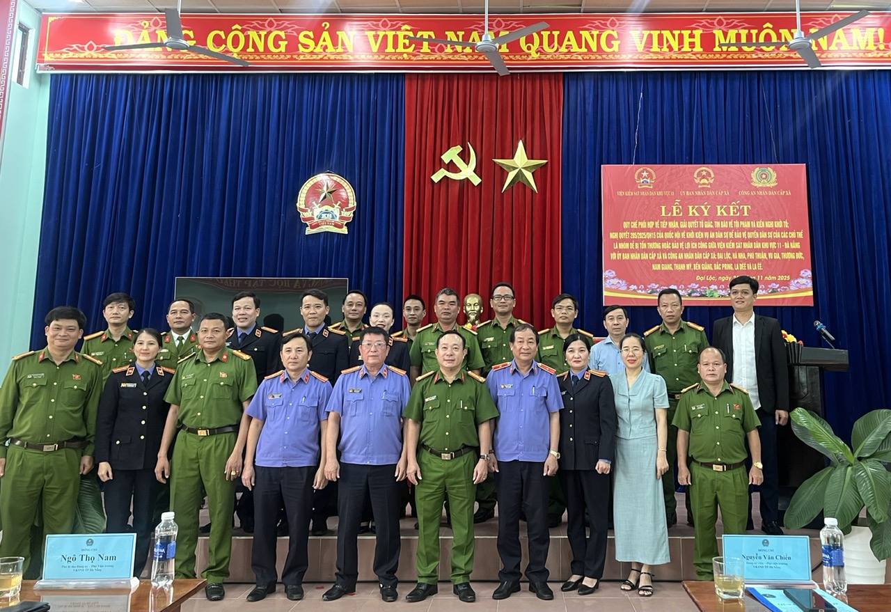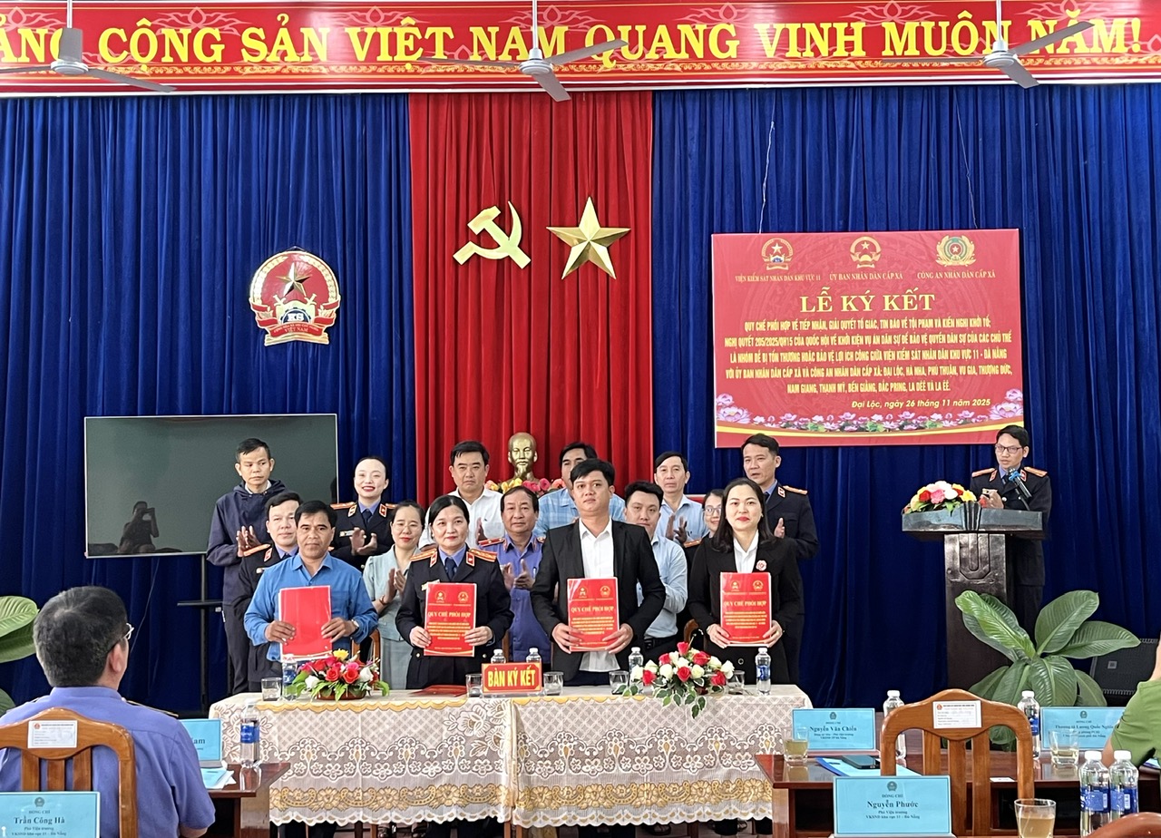 Tại buổi lễ, các bên tiến hành ký kết 02 Quy chế phối hợp, gồm: Quy chế số 01/QCPH-VKSND-CAX phối hợp với Công an cấp xã trong công tác tiếp nhận, phân loại, giải quyết tố giác, tin báo về tội phạm, kiến nghị khởi tố và khởi tố, điều tra vụ án hình sự thuộc thẩm quyền và Quy chế số 02/QCPH-VKSND-UBND phối hợp với Uỷ ban nhân dân cấp xã. Trong đó, Quy chế phối hợp số 02/QCPH-VKSND-UBND được đơn vị chú trọng trình bày cùng Nghị quyết 205/2025/QH15 của Quốc hội thông qua video clip, nhằm làm rõ vai trò của Uỷ ban nhân dân cấp xã và mối quan hệ phối hợp với Viện kiểm sát trong việc bảo vệ lợi ích công và quyền dân sự của nhóm dễ bị tổn thương. Đây là nhiệm vụ mới, có ý nghĩa quan trọng trong việc bảo vệ quyền con người, quyền công dân.