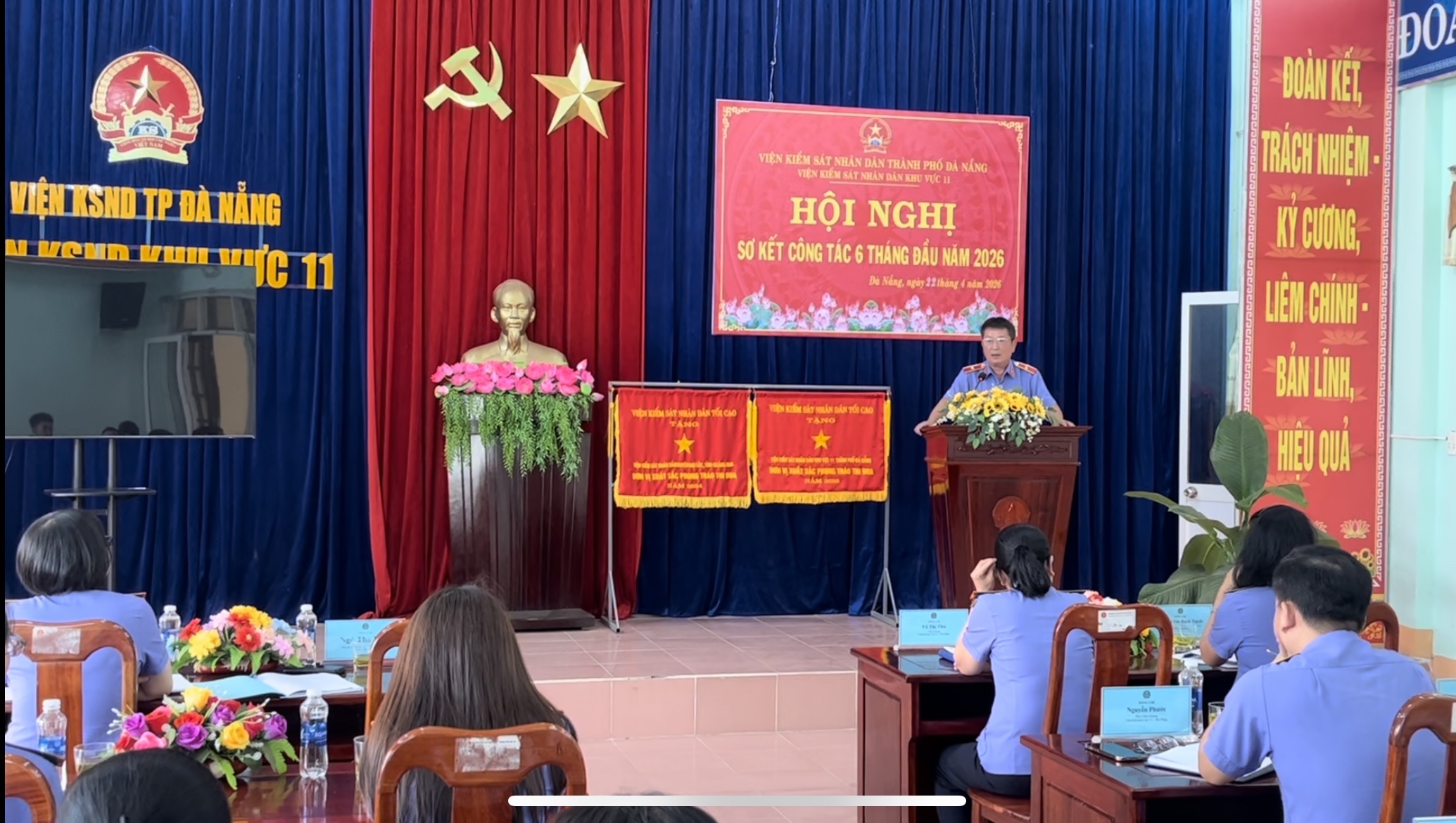 Phát biểu chỉ đạo tại hội nghị, đồng chí Ngô Thọ Nam – Phó Viện trưởng VKSND thành phố Đà Nẵng ghi nhận và biểu dương những kết quả tích cực mà VKSND khu vực 11 đã đạt được trong 06 tháng đầu năm 2026. Đồng thời, đề nghị đơn vị cần tiếp tục phát huy tinh thần đoàn kết, trách nhiệm của tập thể lãnh đạo, công chức, tập trung nâng cao chất lượng thực hành quyền công tố và kiểm sát hoạt động tư pháp; tăng cường sự lãnh đạo của cấp trên trong triển khai thực hiện hiệu quả Nghị quyết 205/2025/QH15 và đẩy mạnh ứng dụng công nghệ thông tin, chuyển đổi số trong hoạt động nghiệp vụ, đáp ứng yêu cầu nhiệm vụ trong tình hình mới./.
