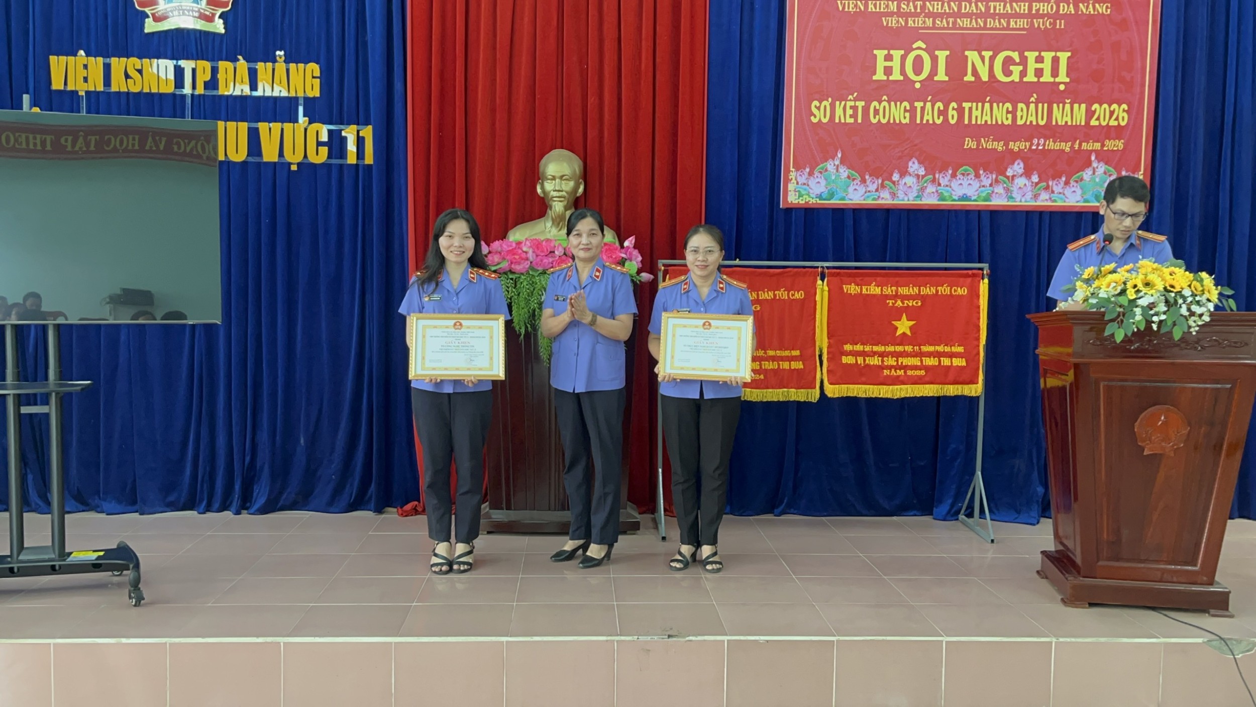 Tại Hội nghị đã được theo dõi video báo cáo tóm tắt kết quả công tác 6 tháng đầu năm 2026 của đơn vị. Hội nghị đã ghi nhận nhiều ý kiến tham luận chất lượng, xoay quanh về nâng cao chất lượng công tác thực hành quyền công tố, kiểm sát hoạt động tư pháp trong giải quyết nguồn tin tội phạm; những cách làm hay trong triển khai thực hiện Nghị quyết số 205/2025/QH15 của Quốc hội và tăng cường ứng dụng công nghệ thông tin, chuyển đổi số của VKSND khu vực 11. Nhân dịp này, đơn vị đã tổ chức khen thưởng các công chức có thành tích xuất sắc trong công tác 6 tháng đầu năm 2026, góp phần động viên, khích lệ phong trào thi đua trong toàn đơn vị.