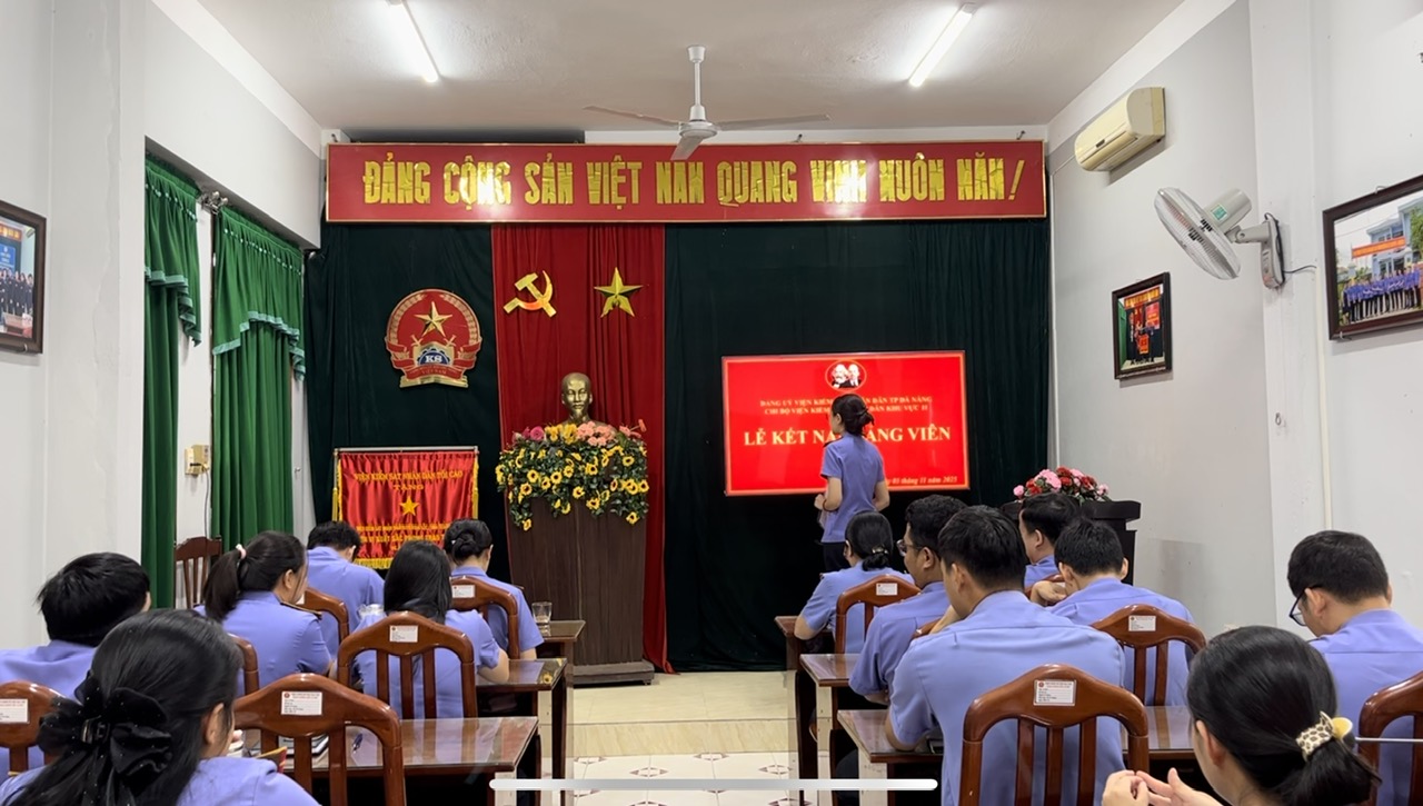 Buổi lễ diễn ra trong không khí trang nghiêm, đúng trình tự, thủ tục theo quy định. Tham dự buổi Lễ có đồng chí Võ Thị Thu – Bí thư Chi bộ, Viện trưởng VKSND khu vực 11 cùng các đồng chí Đảng viên trong Chi bộ. Tại buổi lễ, đồng chí Bí thư Chi bộ trao Quyết định kết nạp đảng viên của Đảng uỷ các cơ quan Đảng thành phố cho đồng chí Phạm Nguyễn Kim Dung.