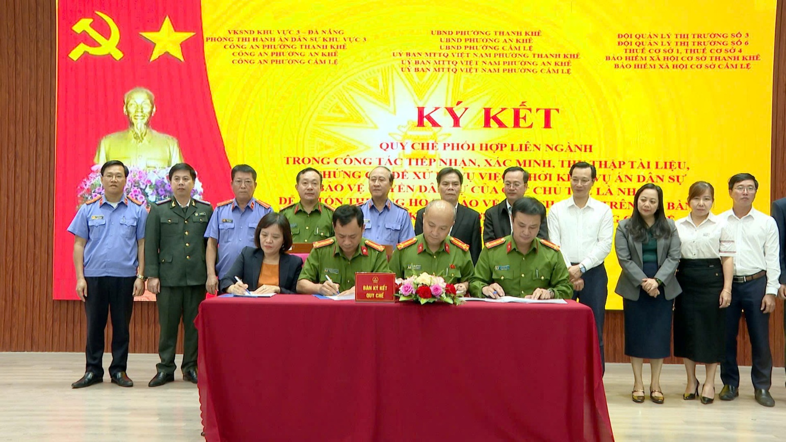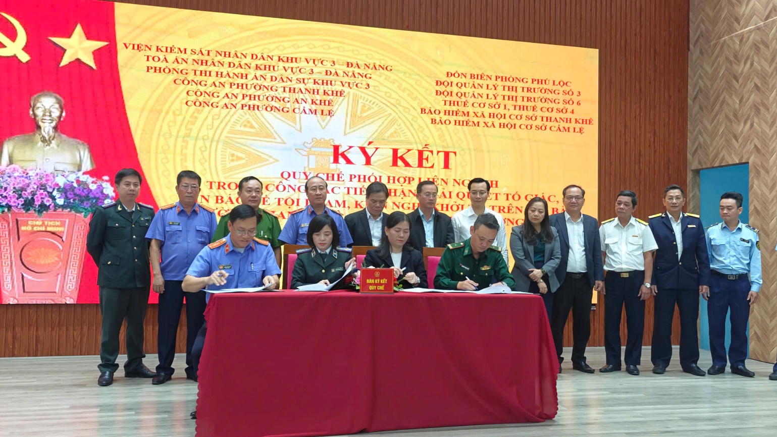 Dự và chỉ đạo Hội nghị, về phía VKSND thành phố Đà Nẵng có đồng chí Trần Hoài Nam - Thành ủy viên, Bí thư Đảng ủy, Viện trưởng VKSND thành phố Đà Nẵng; đồng chí Ngô Thọ Nam – Phó Bí thư Đảng uỷ, Phó Viện trưởng VKSND thành phố Đà Nẵng cùng các đồng chí là lãnh đạo phòng nghiệp vụ VKSND thành phố. Tham dự Hội nghị có các đồng chí đại diện lãnh đạo Cơ quan CSĐT Công an thành phố, Toà án nhân dân thành phố, Cơ quan Thi hành án hình sự thành phố, Thi hành án dân sự thành phố Đà Nẵng, Đảng uỷ phường Thanh Khê, An Khê, Cẩm Lệ. Về phía 20 cơ quan liên ngành ký kết Quy chế có đồng chí Nguyễn Hồng Giang – Bí thư Chi bộ, Viện trưởng VKSND khu vực 3 – Đà Nẵng; đại diện lãnh đạo Toà án nhân dân khu vực 3, Phòng THADS khu vực 3; Công an các phường, UBND các phường, Ủy ban MTTQVN các phường Thanh Khê, An Khê, Cẩm Lệ; BHXH cơ sở Thanh Khê, BHXH cơ sở Cẩm Lệ, Thuế cơ sở 1, Thuế cơ sở 4, Đội quản lý thị trường số 3, Đội quản lý thị trường số 6, Phân trại tạm giam Cẩm Lệ, Đồn Biên phòng Phú Lộc - thành phố Đà Nẵng cùng các đồng chí lãnh đạo các cơ quan, đơn vị, địa phương và công chức, người lao động VKSND khu vực 3 – TP Đà Nẵng.