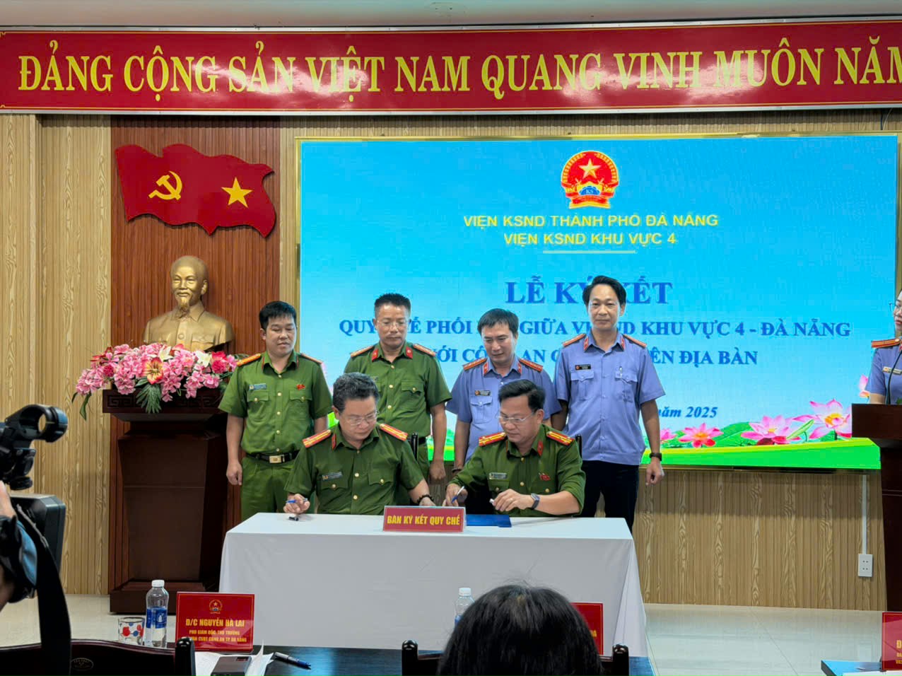 Trên cơ sở nội dung đã được thống nhất giữa các đơn vị liên quan, Hội nghị đã tiến hành lễ ký kết đối với các Quy chế phối hợp: Quy chế phối hợp giữa VKSND khu vực 4 và UBND cấp xã, phường trong triển khai thực hiện Nghị quyết số 205 và một số nội dung trong công tác nội chính; Quy chế phối hợp giữa VKSND khu vực 4 và Công an cấp xã, phường trong công tác tiếp nhận, giải quyết nguồn tin về tội phạm.