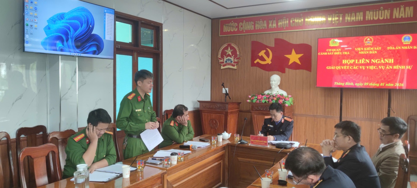 Tại cuộc họp, các đồng chí Điều tra viên, Kiểm sát viên được phân công giải quyết vụ án hình sự đã báo cáo nội dung vụ việc, vụ án hình sự xảy ra trên địa bàn có tính chất phức tạp, còn khó khăn, vướng mắc, có nhiều quan điểm khác nhau giữa các cơ quan tiến hành tố tụng.