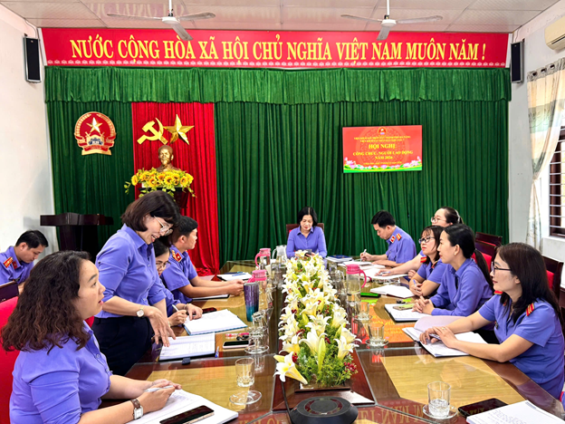 Thực hiện quy định của pháp luật về dân chủ ở cơ sở và kế hoạch công tác năm 2026, chiều ngày 19/01/2026, Viện kiểm sát nhân dân Khu vực 7 đã tổ chức Hội nghị công chức, người lao động năm 2026. Dự và chủ trì Hội nghị có đồng chí Trần Thị Thắm - Viện trưởng Viện kiểm sát nhân dân Khu vực 7, các đồng chí Phó Viện trưởng cùng toàn thể công chức, người lao động trong đơn vị.