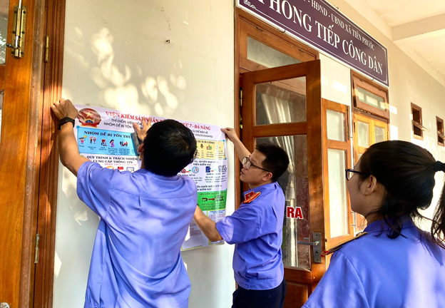 Những tấm pano tuyên truyền được bố trí tại các vị trí thuận lợi, dễ quan sát trong khu vực tiếp nhận và giải quyết thủ tục hành chính, giúp người dân khi đến liên hệ công việc kịp thời nắm bắt những nội dung cơ bản của Nghị quyết số 205. Pano được biên soạn ngắn gọn, dễ hiểu, tập trung vào các nội dung cơ bản như: các đối tượng cụ thể được bảo vệ theo Nghị quyết số 205 như đối tượng thuộc nhóm dễ bị tổn thương, các lĩnh vực thuộc lợi ích công; trách nhiệm của các cơ quan, tổ chức, cá nhân có liên quan, trong đó chú trọng các nhiệm vụ, quyền hạn của Viện kiểm sát nhân dân, thẩm quyền giải quyết của Tòa án nhân dân và thẩm quyền khởi kiện vụ án dân sự của Viện kiểm sát nhân dân theo quy định tại Nghị quyết.