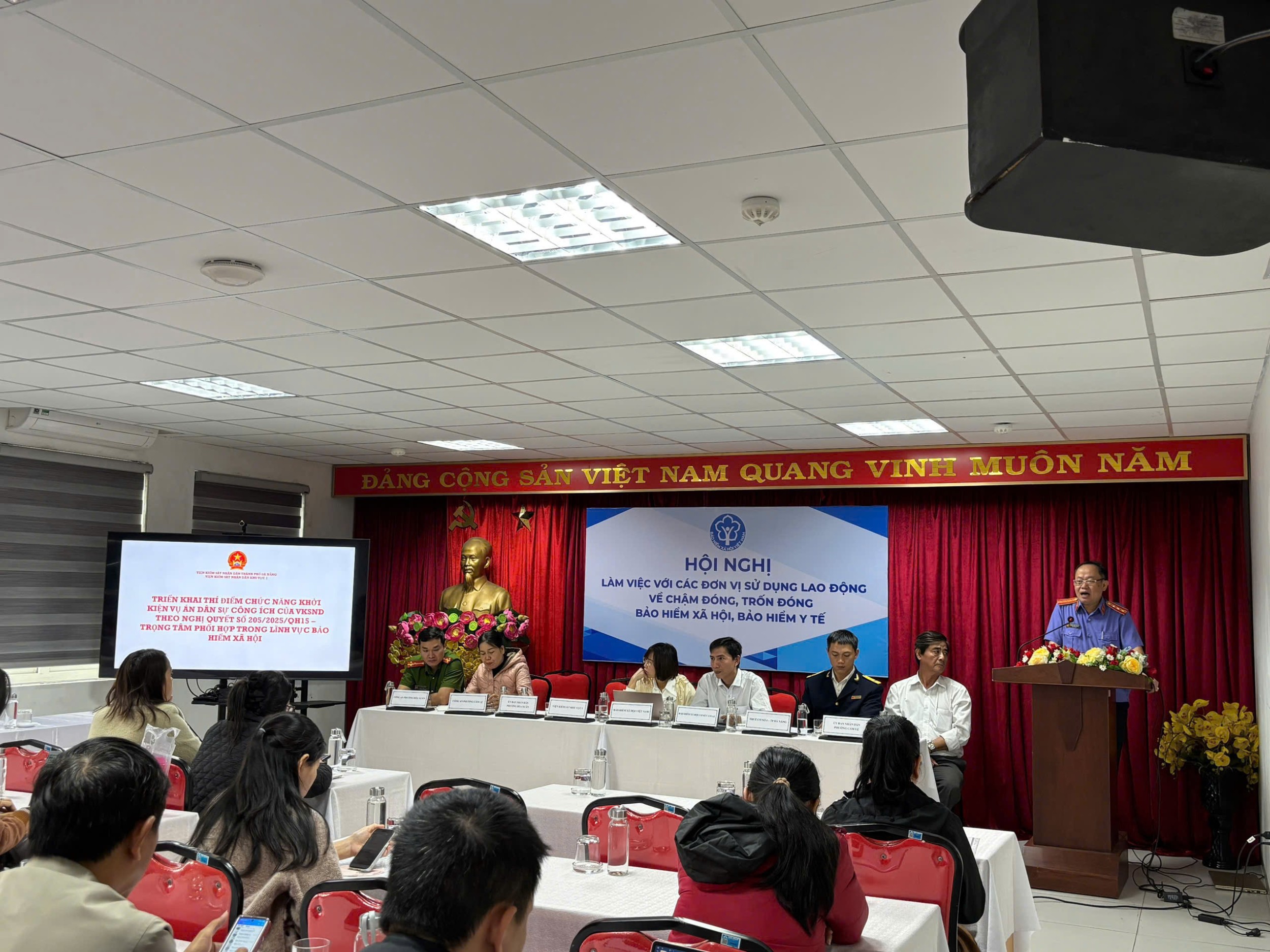 Tại Hội nghị, đồng chí Nguyễn Đức Thông - Viện trưởng VKSND khu vực 1 đã tuyên truyền về mục tiêu, nội dung cốt lõi của Nghị quyết 205 và những hành vi vi phạm phổ biến trong lĩnh vực BHXH, BHYT, BHTN như: trốn đóng, chậm đóng BHXH,… Các hành vi này trực tiếp xâm phạm quyền an sinh xã hội, đặc biệt đối với phụ nữ mang thai, người khuyết tật, người cao tuổi, người có thu nhập thấp – các nhóm đối tượng thuộc phạm vi bảo vệ của Nghị quyết 205.