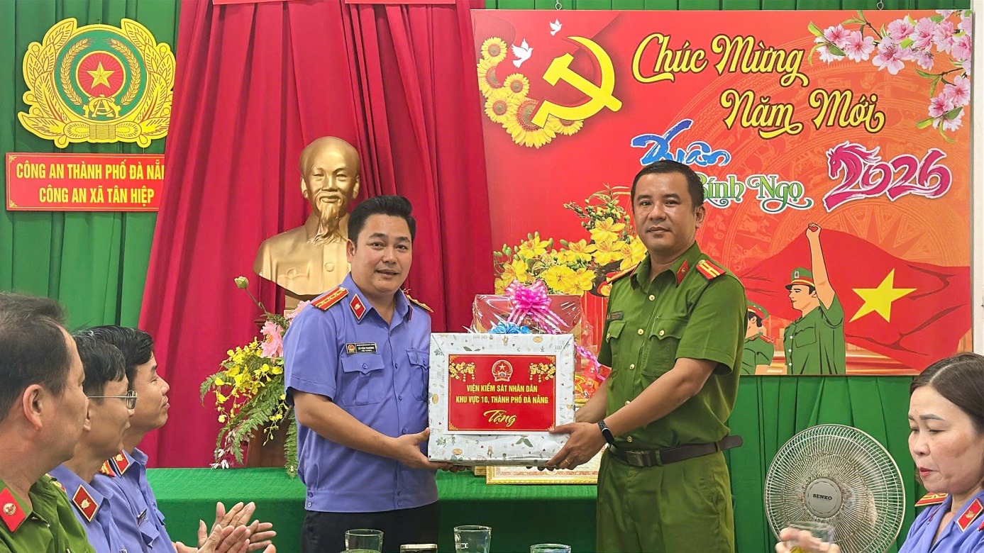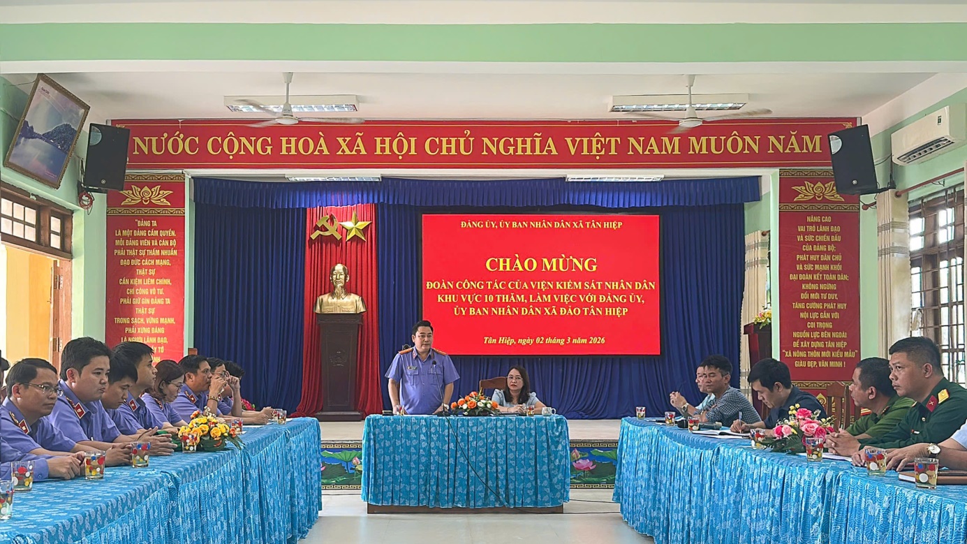 Lãnh đạo VKSND khu vực 10 thăm hỏi và làm việc với Công an xã Tân Hiệp