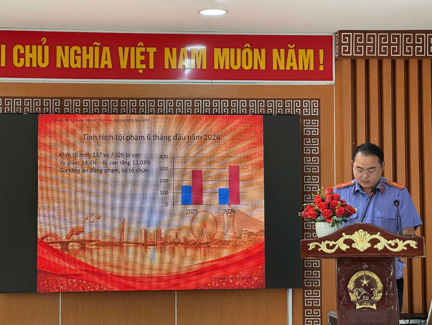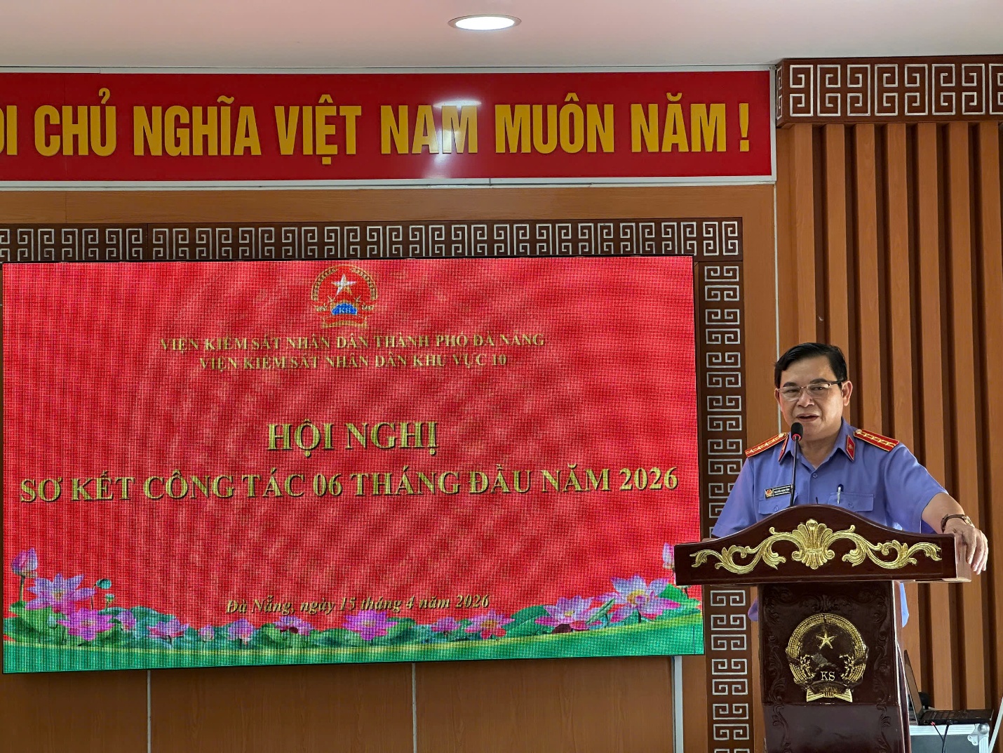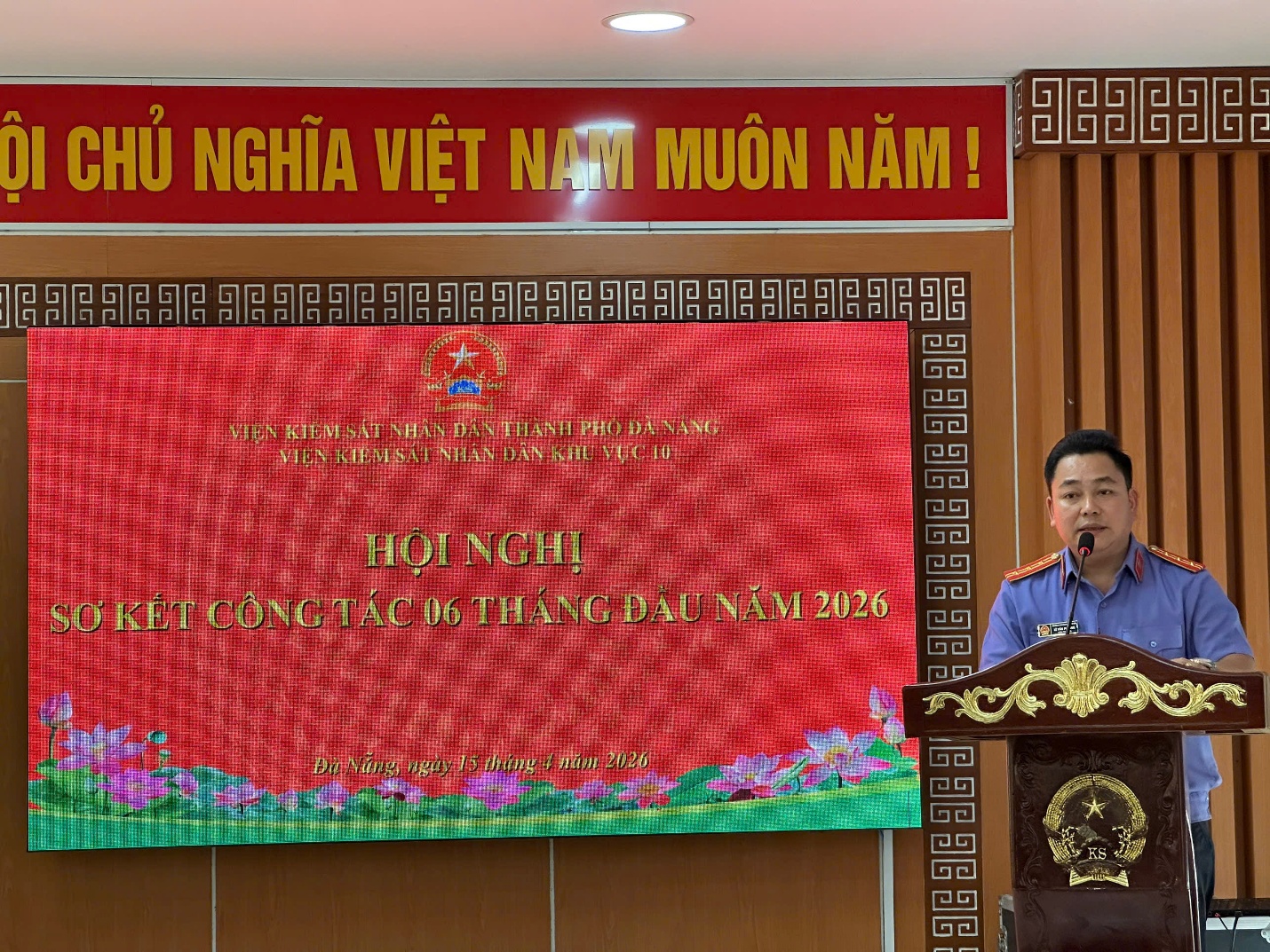 Kết thúc hội nghị, đồng chí Lê Văn Phương – Bí thư Chi bộ, Viện trưởng VKSND khu vực 10 đã tiếp thu đầy đủ các ý kiến chỉ đạo của lãnh đạo cấp trên; đồng thời phát biểu kết luận Hội nghị, xác định rõ các nhiệm vụ, giải pháp trọng tâm trong 06 tháng cuối năm 2026. Đồng chí yêu cầu toàn thể cán bộ, công chức trong đơn vị tiếp tục phát huy tinh thần đoàn kết, trách nhiệm, chủ động, sáng tạo; tăng cường phối hợp trong thực hiện nhiệm vụ; quyết tâm hoàn thành đạt và vượt các chỉ tiêu công tác đã đề ra. Hội nghị sơ kết công tác 06 tháng đầu năm 2026 của VKSND khu vực 10 – Đà Nẵng đã diễn ra nghiêm túc, đúng quy định, phát huy dân chủ, trí tuệ tập thể và kết thúc thành công tốt đẹp. Kết quả của Hội nghị là cơ sở quan trọng để đơn vị tiếp tục triển khai đồng bộ, hiệu quả các nhiệm vụ công tác trong thời gian tới, góp phần thực hiện tốt chức năng, nhiệm vụ của ngành Kiểm sát nhân dân trong công cuộc bảo vệ pháp chế xã hội chủ nghĩa.