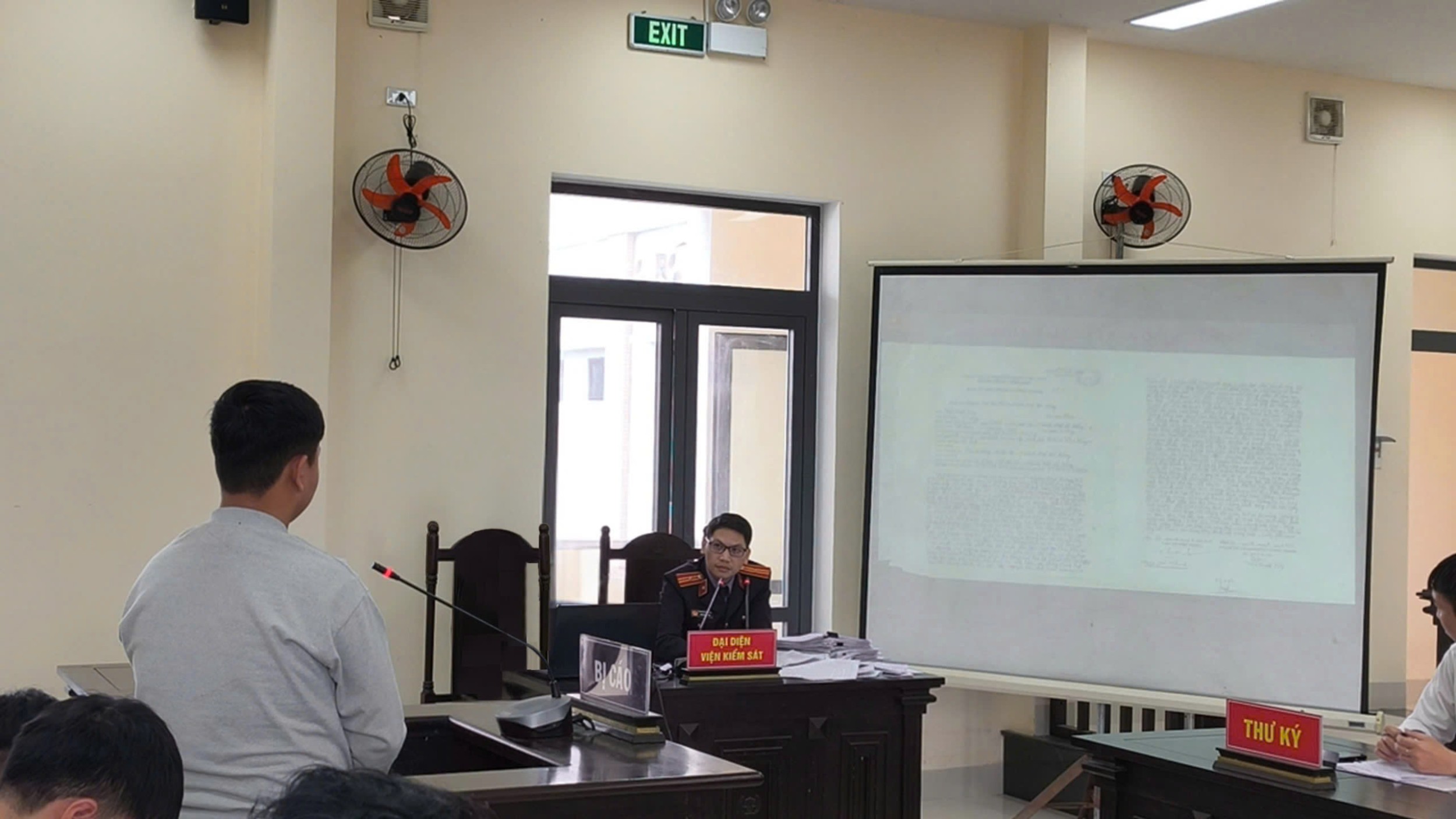 Kiểm sát viên thực hiện trình chiếu chứng cứ tại phiên toà
