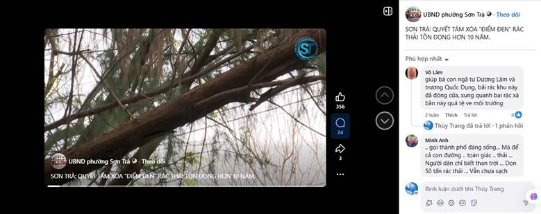 Thông tin về vụ việc được người dân bình luận trên trang Facebook của Ủy ban nhân dân phường Sơn Trà