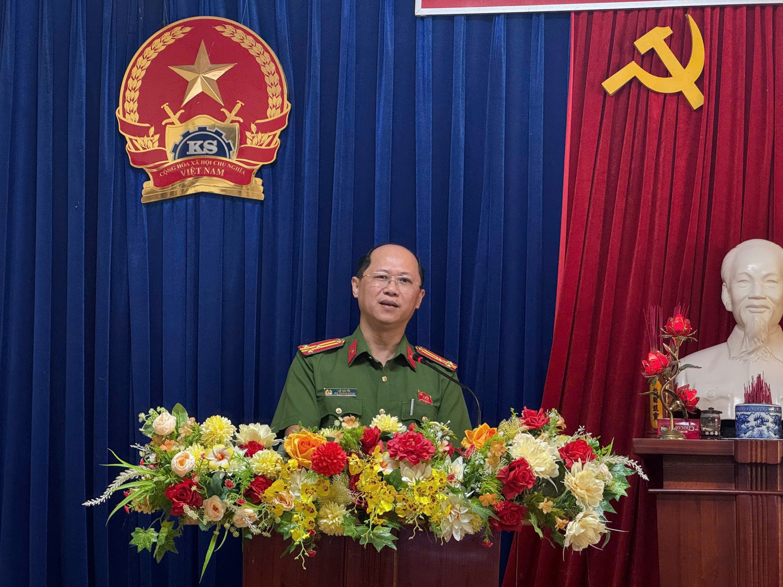 Đ/c Lê Văn Tín - Phó Trưởng phòng PC02 phát biểu tại buổi lễ