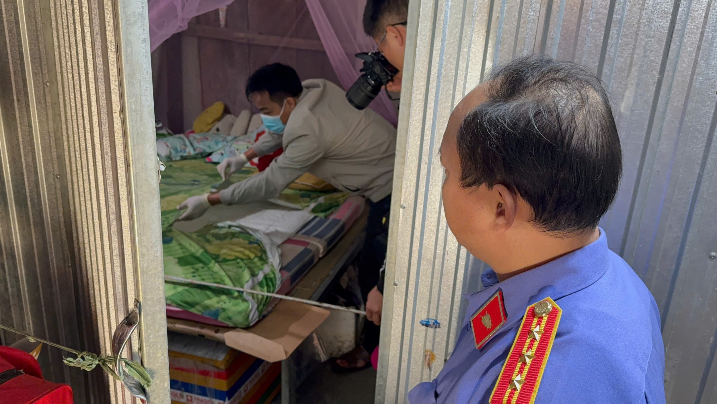 Hoạt động kiểm tra, khám nghiệm hiện trường nhà của nạn nhân tại Thôn 1, xã Trà Linh, cơ quan chức năng đã phát hiện và thu giữ các mẫu vật còn sót lại trên giường- nơi đối tượng thực hiện hành vi phạm tội.