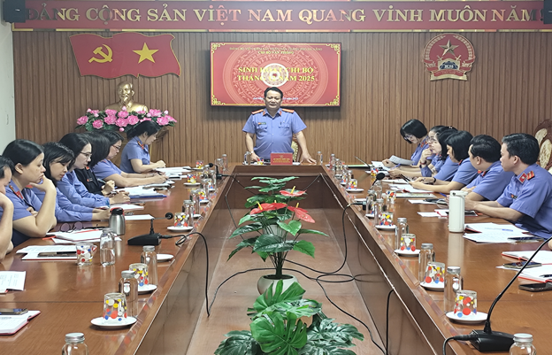 Thực hiện Quy định số 345-QĐ/TU của Ban Thường vụ Thành ủy Đà Nẵng và Kế hoạch kiểm điểm, đánh giá, xếp loại chất lượng đối với tập thể, cá nhân năm 2025 của Đảng ủy Viện kiểm sát nhân dân (VKSND) thành phố Đà Nẵng, ngày 10/12/2025, Chi bộ Văn phòng VKSND thành phố Đà Nẵng đã tổ chức Hội nghị kiểm điểm, tự đánh giá và xếp loại chất lượng tập thể, đảng viên năm 2025.