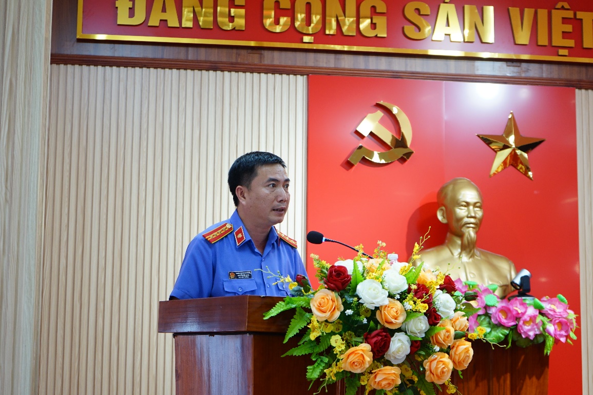 Đồng chí Nguyễn Văn Chiến, Phó Viện trưởng VKSND thành phố phát biểu tại Hội nghị