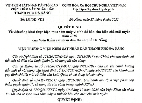 về việc công khai thực hiện mua sắm máy vi tính để bàn cho biên chế mới tuyển năm 2025