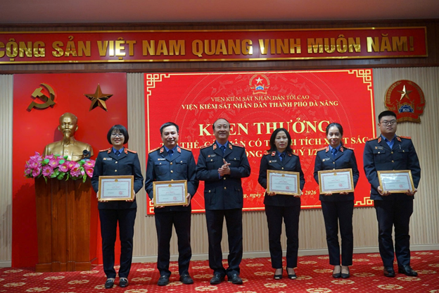 Tại Hội nghị cũng Viện trưởng VKSND thành phố Đà Năng cũng đã trao giấy khen cho 08 tập thể và 06 cá nhân có thành tích xuất sắc trong công tác Quý 1/2026.