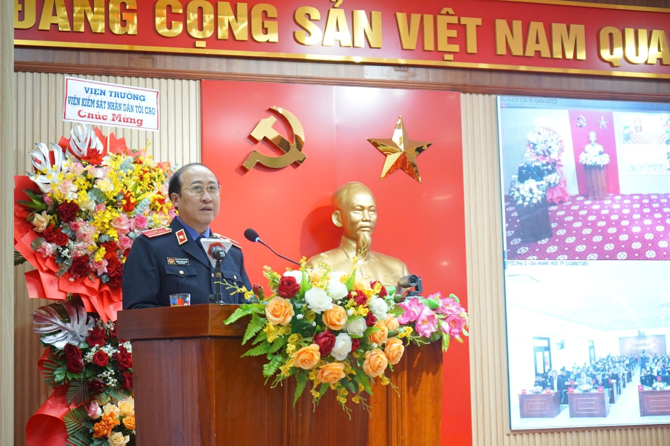 Phát biểu chỉ đạo hội nghị, đồng chí Nguyễn Huy Tiến, Ủy viên Ban Thường vụ Đảng ủy Các cơ quan Đảng Trung ương, Bí thư Đảng ủy, Viện trưởng VKSND tối cao tối cao ghi nhận, biểu dương và đánh giá cao những nỗ lực, cố gắng, kết quả đạt được và những đóng góp quan trọng của VKSND hai cấp thành phố Đà Nẵng trong năm qua. Trong bối cảnh đầy khó khăn, thách thức do sắp xếp bộ máy, thiên tai, bão lũ… nhưng tập thể lãnh đạo VKSND thành phố Đà Nẵng đã lãnh đạo, chỉ đạo VKS 2 cấp nỗ lực, vượt khó, nhanh chóng ổn định, thực hiện nhiều giải pháp đổi mới, tạo sự chuyển biến tích cực đạt và vượt các chỉ tiêu công tác, hoàn thành tốt chức năng, nhiệm vụ; phối hợp tốt với các cơ quan tư pháp thành phố và tích cực, chủ động tham mưu với cấp ủy, phục vụ tốt nhiệm vụ chính trị của địa phương. Năm 2026 là năm đầu tiên thực hiện Nghị quyết Đại hội Đảng toàn quốc lần thứ XIV và nhiệm kỳ Quốc hội khóa XVI (2026 - 2031), đồng chí chỉ đạo tập thể lãnh đạo VKSND thành phố Đà Nẵng, VKS 2 cấp tiếp tục triển khai thực hiện tốt các ý kiến phát biểu chỉ đạo của đồng chí Phó Bí thư, Chủ tịch HĐND Thành ủy; đồng thời, tập trung thực hiện tốt phương châm hành động của toàn Ngành là “Đoàn kết, đổi mới - Bản lĩnh, kỷ cương - Chuyên nghiệp, hiện đại”, triển khai thực hiện hiệu quả 03 nhiệm vụ trọng tâm đột phá với yêu cầu cao hơn, từng bước xây dựng “Viện kiểm sát số”, bảo đảm tính chuyên nghiệp, hiện đại, đổi mới mạnh mẽ từ “quản lý sang quản trị”, đề cao trách nhiệm nêu gương của người đứng đầu; đổi mới công tác đánh giá cán bộ theo KPI; phối hợp với Vụ 15 bảo đảm bổ sung biên chế cho VKSND 2 cấp, hướng tới tăng cường KSV cao cấp cho VKS cấp khu vực; lựa chọn, bổ nhiệm đội ngũ Kiểm sát viên chất lượng, trách nhiệm, năng lực, hiệu suất làm việc tốt, tận tâm, tận lực cống hiến và phục vụ Nhân dân. Phát huy đoàn kết, dân chủ, trí tuệ tập thể; siết chặt kỷ luật, kỷ cương, tự thanh tra, kiểm tra, phát hiện và uốn nắn kịp thời trong nội bộ; đặc biệt, phải phòng ngừa triệt để tham nhũng, tiêu cực, lãng phí. Đồng chí cũng đề nghị Thường trực Thành uỷ, UBND thành phố tiếp nhận 14 trụ sở dôi dư của Ngành tại địa phương để tránh lãng phí tài sản; đồng thời, quan tâm bố trí diện tích đất bảo đảm theo quy mô mới, hỗ trợ nguồn kinh phí để xây dựng, cải tạo, sửa chữa trụ sở VKSND thành phố và một số VKSND khu vực; quan tâm hỗ trợ kinh phí chuyển đổi số, nhà ở công vụ, nhà ở xã hội cho đội ngũ cán bộ kiểm sát sau sáp nhập để sớm ổn định và đáp ứng yêu cầu, nhiệm vụ.