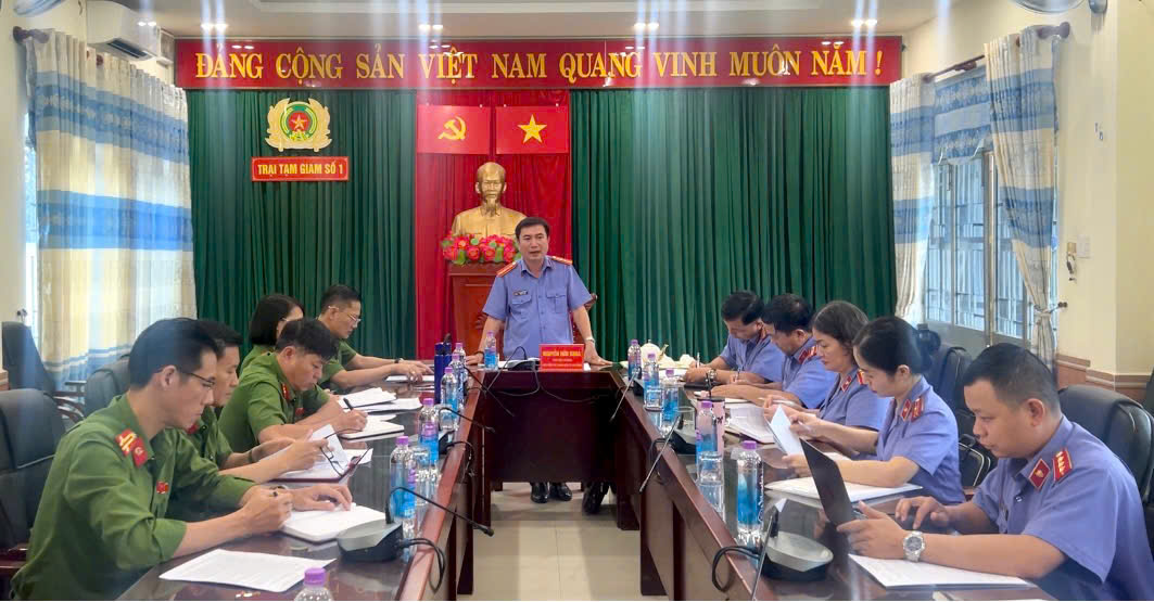 Tại buổi làm việc, đồng chí Nguyễn Hữu Khoa – Ủy viên BTV Đảng ủy, Phó Viện trưởng Viện KSND thành phố Đà Nẵng đã công bố Quyết định, Kế hoạch trực tiếp kiểm sát việc tạm giữ, tạm giam và thi hành án phạt tù. Sau khi công bố quyết định trực tiếp kiểm sát, đoàn đã trực tiếp nghiên cứu các báo cáo, văn bản, tài liệu và hồ sơ liên quan đến công tác quản lý, giáo dục và thực hiện chế độ với người bị tạm giữ, người bị tạm giam, phạm nhân; kiểm sát tại buồng tạm giữ, buồng tạm giam, buồng thăm gặp và những nơi khác có liên quan; trực tiếp điểm danh, kiểm diện đối với buồng giam giữ, gặp hỏi một số người bị tạm giữ, người bị tạm giam về việc giam giữ.